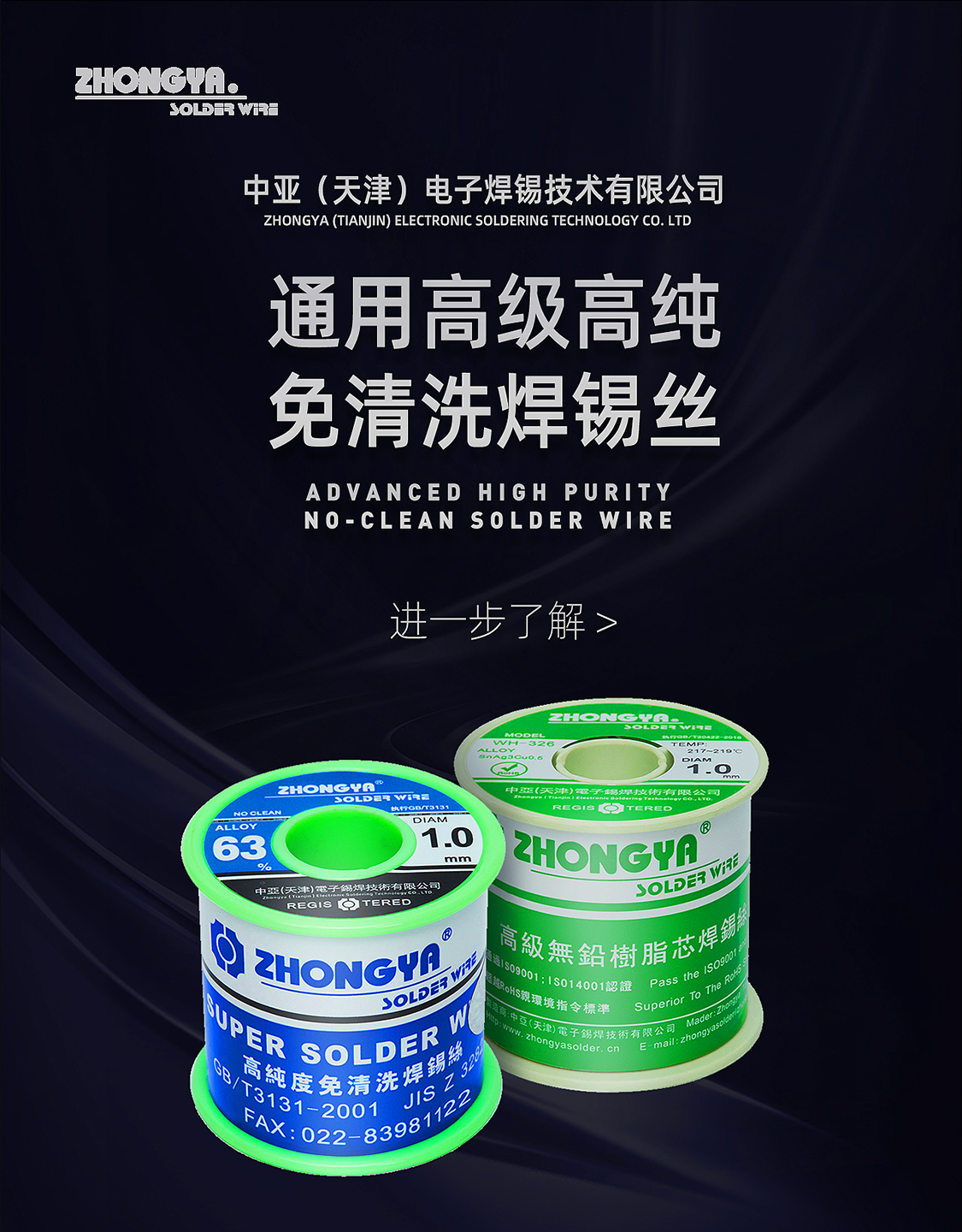 中亚高级(Sn60)免清洗焊锡丝,线径φ1.0mm,重量500g
